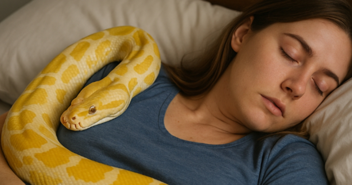 Девушка держала у себя дома огромного питона. Однажды питомец начал вести себя странно: перестал есть, всё чаще обвивался вокруг её талии — и лишь потом хозяйка узнала нечто ужасающее о своём любимце.