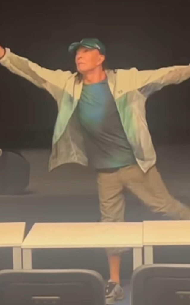 Фотографы сразу подметили детали внешности кумира: под модной кепкой он, кажется, скрывал редеющие волосы, а из-под бриджей проглядывали массивные татуировки на ногах. Несмотря на возраст и очевидные изменения, Леонтьев старался держаться бодро и энергично.