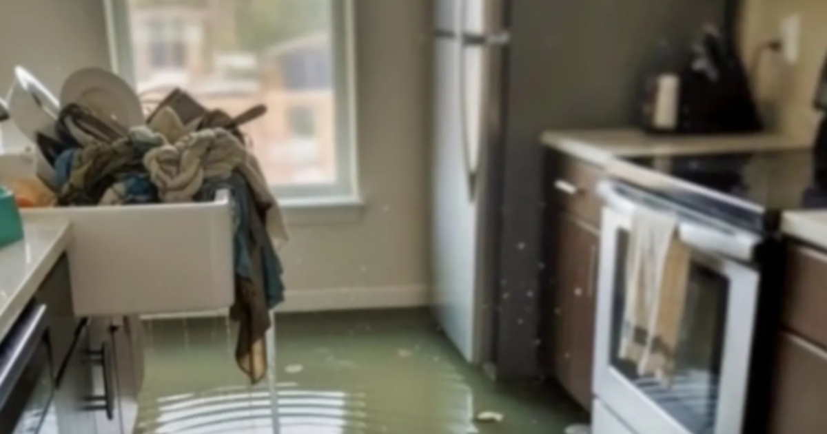 На следующее утро произошёл кошмар. Джулия и Марк вернулись с двухнедельного приёма у педиатра — а их кухня превратилась в водопад. Пятисантиметровый слой воды затопил пол, испортив шкафы и заливая гостиную. Слив был забит, кран открыт на полную.