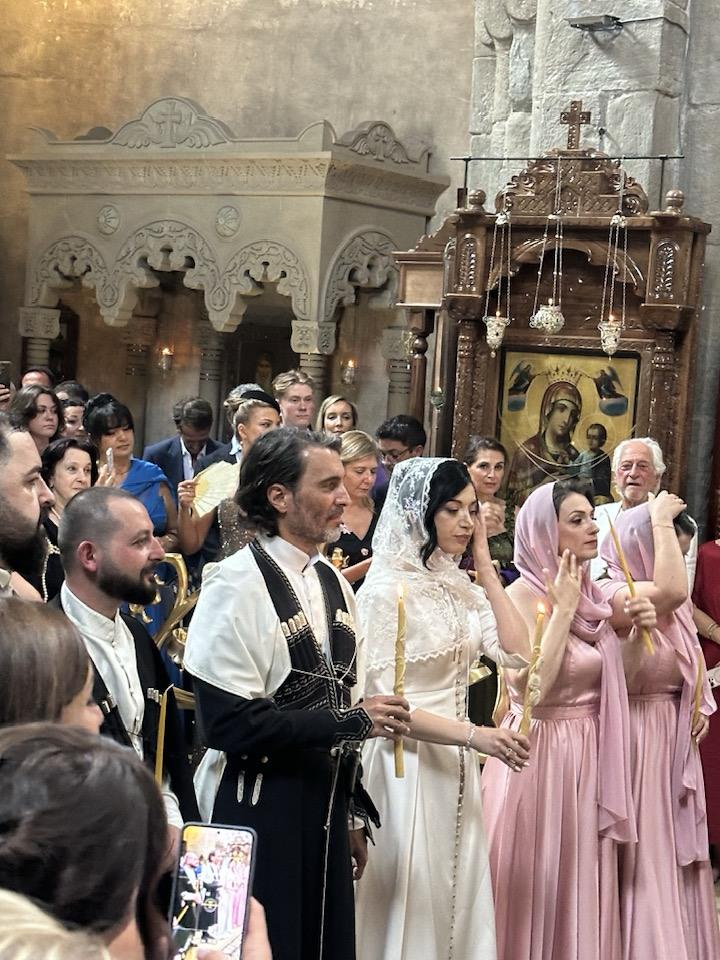 Все торжество прошло с грузинскими традициями, национальным костюмом и православным венчанием в древней Мцхете.