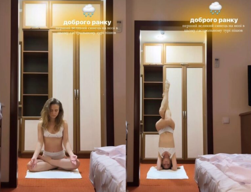 Вот и на недавних кадрах знаменитость представила пару упражнений, которые она делает ежедневно. В частности, Анна встала на голову и скрестила ноги бабочкой. Все это она делала в одном лишь светлом белье.