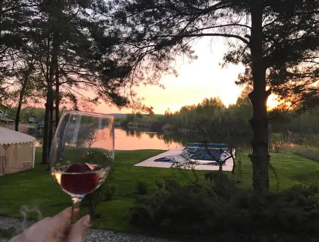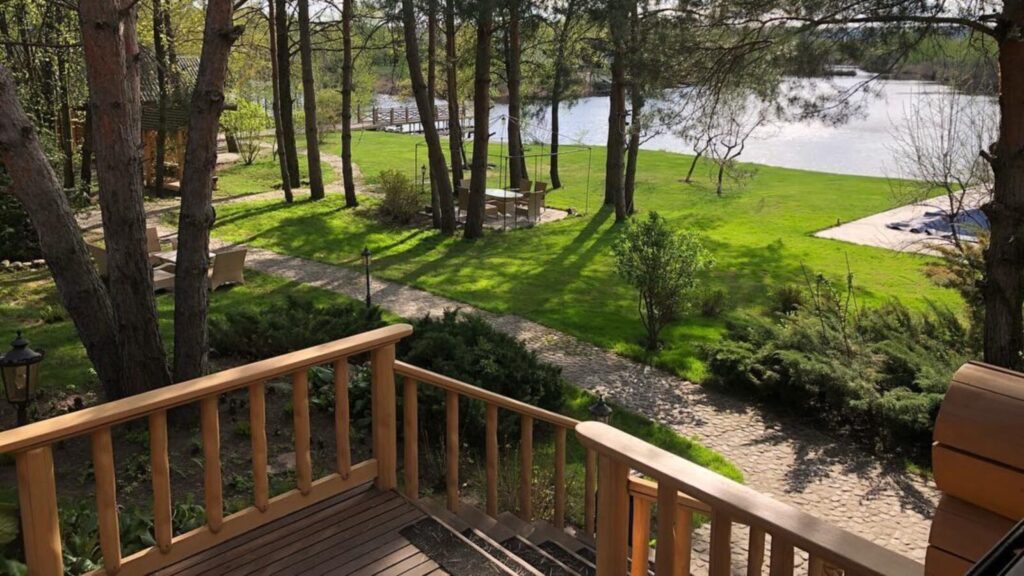 На участке Поляковой есть собственный песчаный пляж с прямым выходом к Днепру, просторный бассейн, профессиональный спортзал, баня, ухоженный огород и теплица, где артистка выращивает овощи, а также небольшая ферма.