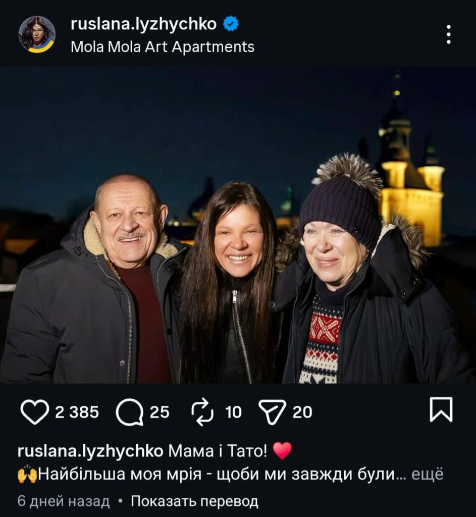 Мать артистки — русская по национальности, с польско-литовскими корнями. На снимке она предстала спокойной, ухоженной женщиной с мягким, добрым взглядом. Многие отметили, что теперь становится понятно, от кого Руслана унаследовала внешность и внутреннюю силу.